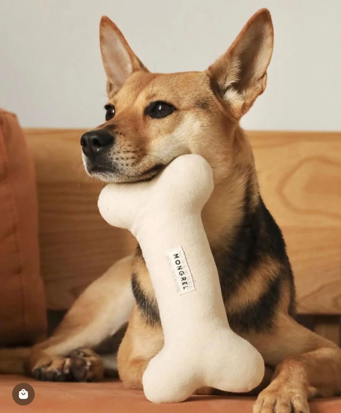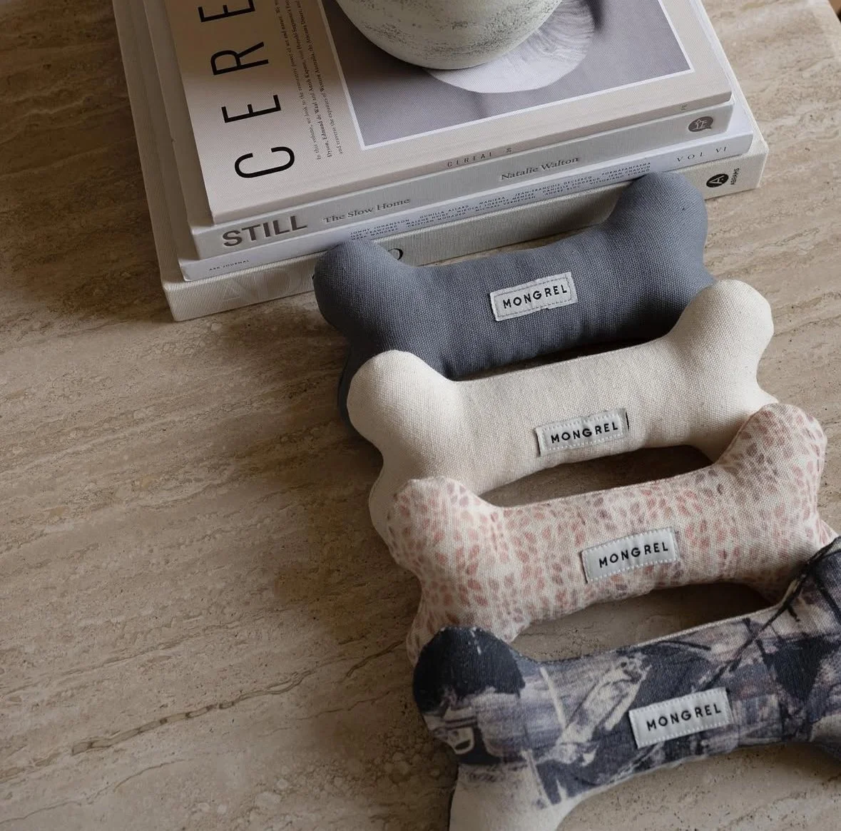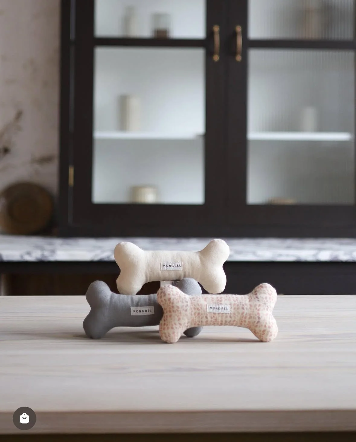 Made with durable, but oh so satisfying-to-chew-on canvas, our bones are double lined and double stitched for long-lasting play. They’re made with recycled materials (even the squeakers!), and are machine washable for when they get to that “don’t come near me with that thing” stage.